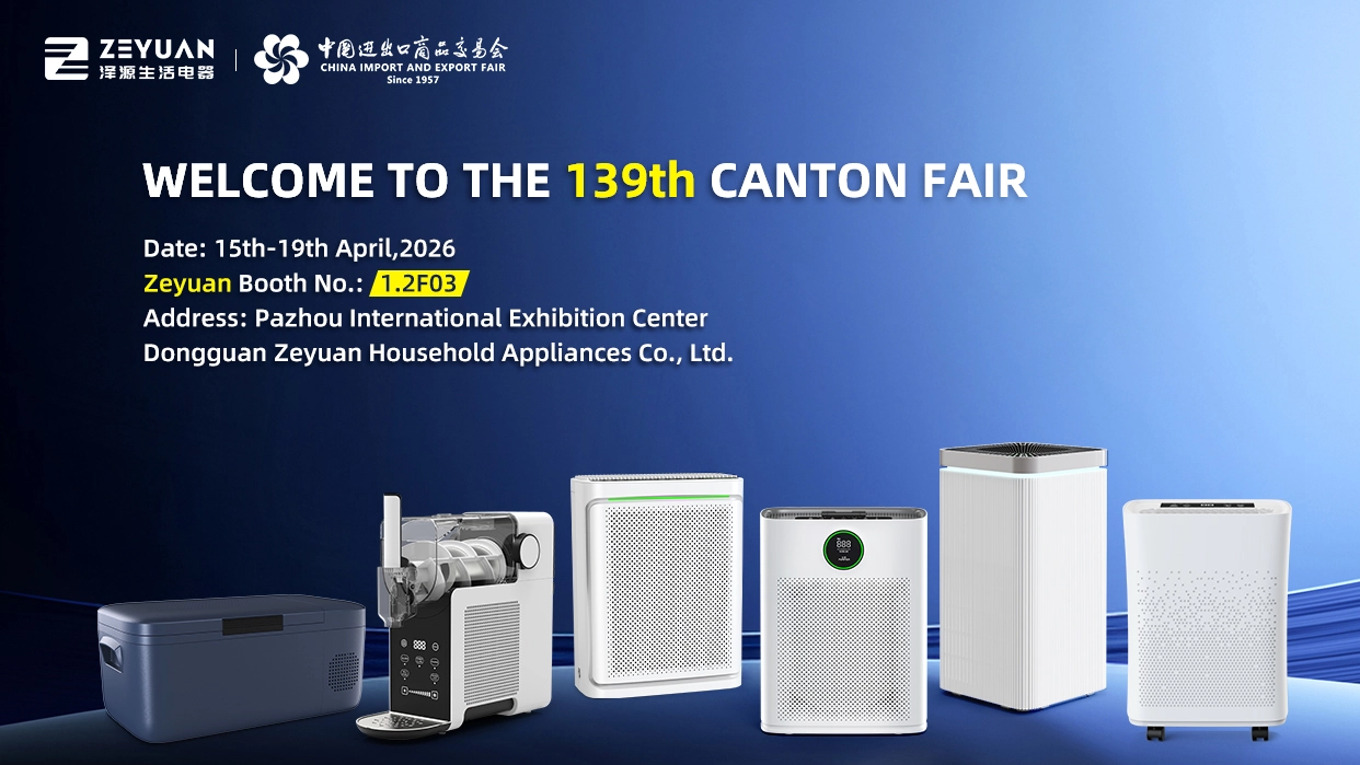 [Dongguan city, China] – [Date, April 9, 2026] – Dongguan Zeyuan Household Appliances Co., Ltd., a premier manufacturer with 19 years of dedicated experience in the research, development, and production of air purification technology, is thrilled to announce its participation in the upcoming 2026 Spring Canton Fair. The globally recognized trade event will take place from April 15th to April 19th, 2026, in Guangzhou, China. We warmly invite global buyers, distributors, and industry partners to visit us at Booth 1.2F03.