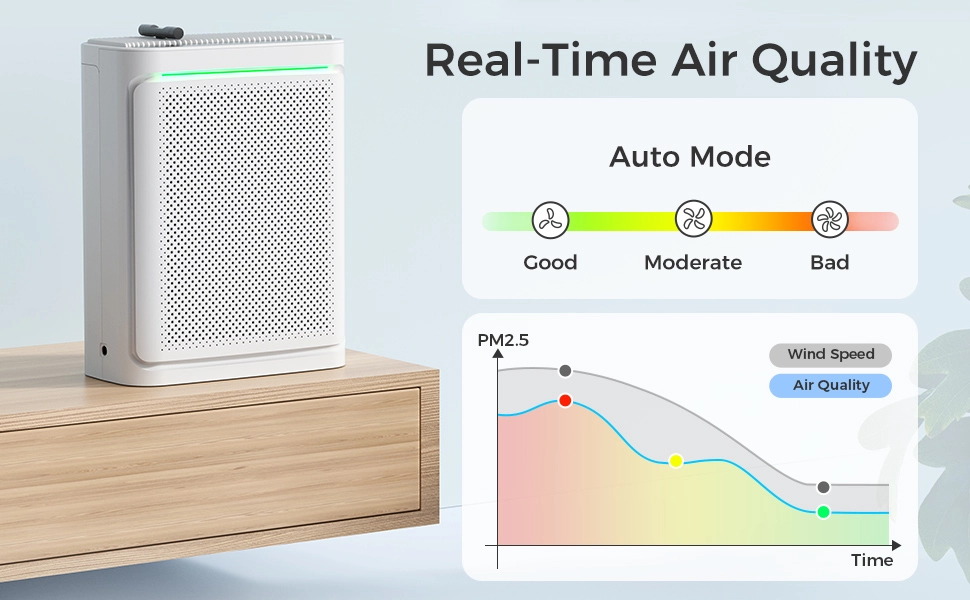 • Air quality indicator & PM2.5 digital display