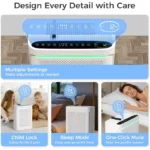 It offers three fan speeds, Auto Mode, Timer, Filter Reminder, and an Aromatherapy function. With energy efficiency (24W), a Child Lock, PM2.5 sensor, and optional WiFi connectivity, it’s the perfect balance of design and performance for any space.