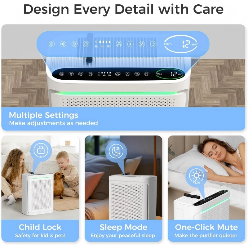 200CADR True HEPA Home Air Purifiers for Home Large Room with WiFi control