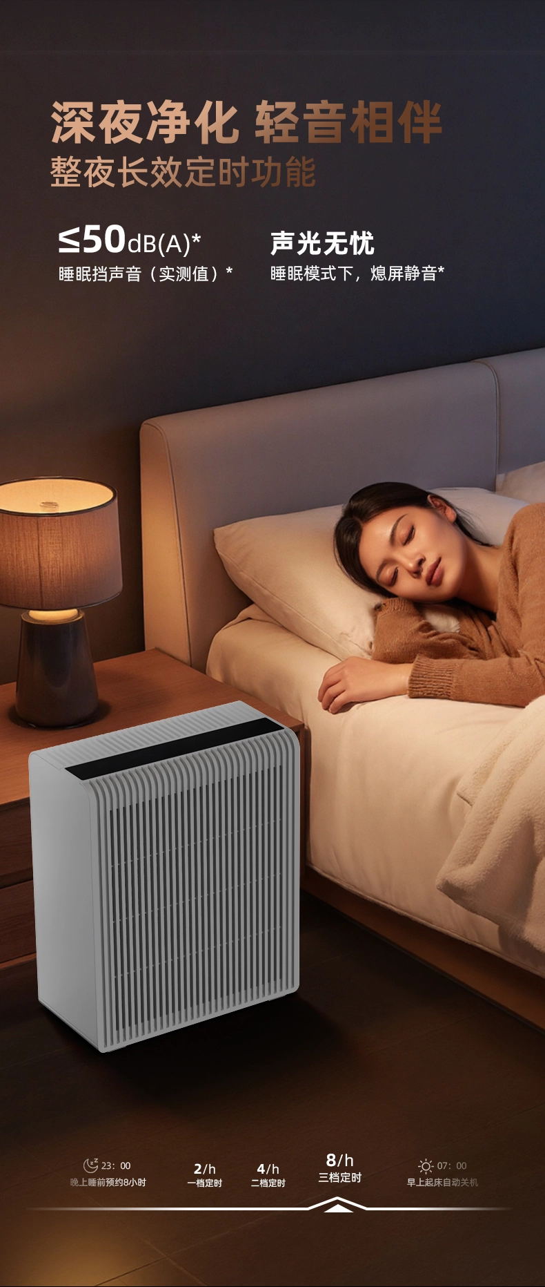 Low Noise Air Purifier for Nightstand, HEPA Air Cleaner for Pet Dander and Bedroom Allergies