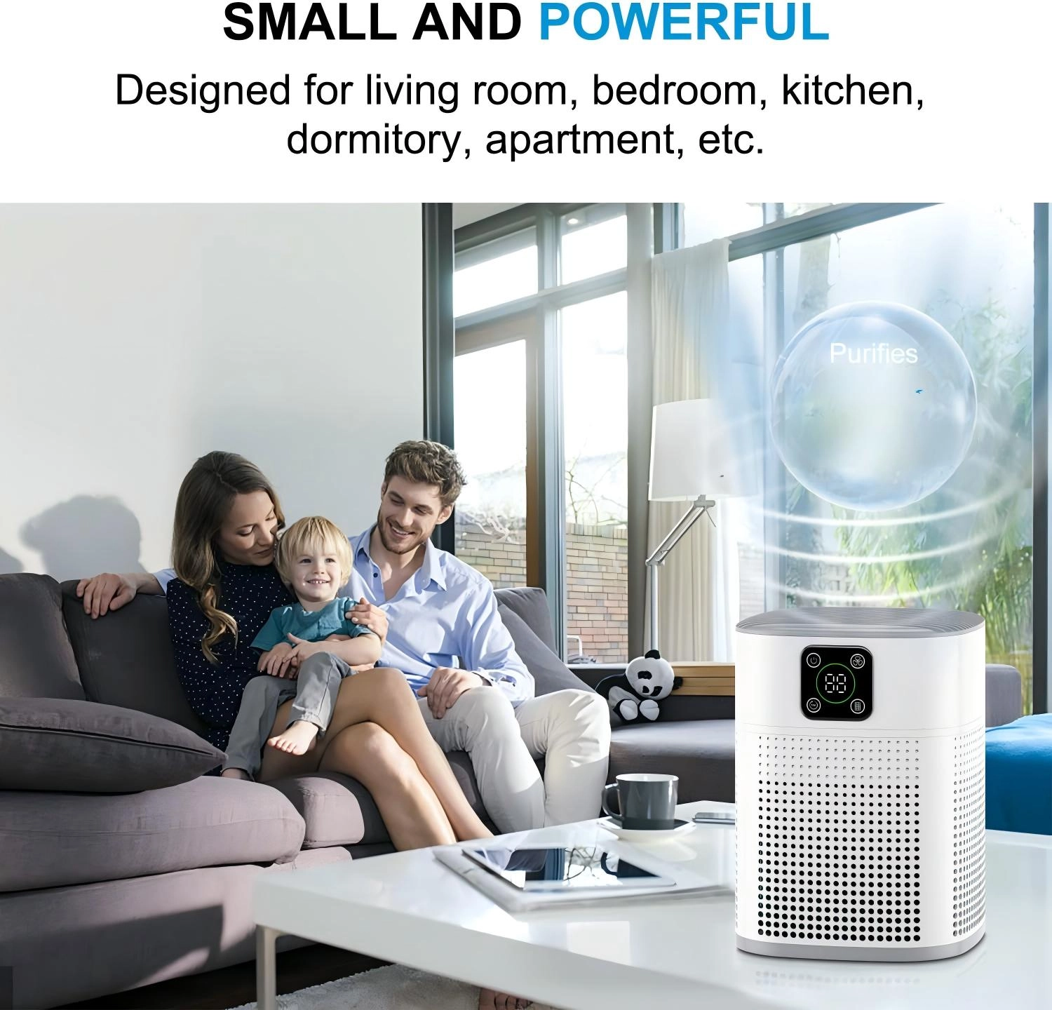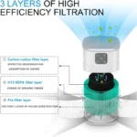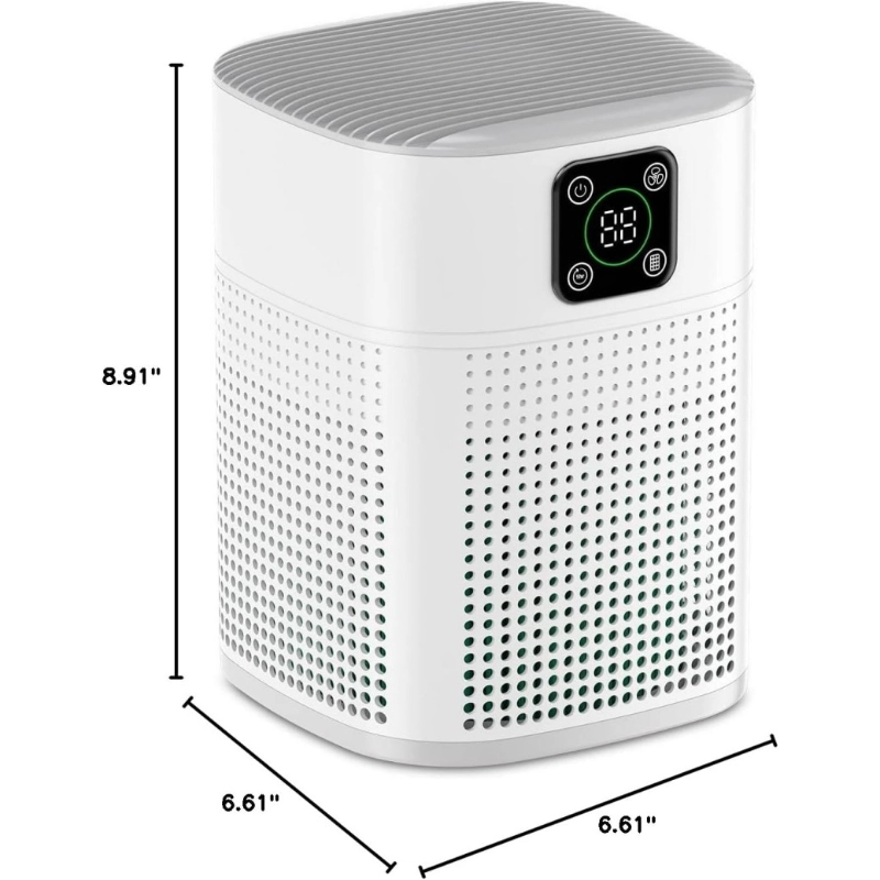 This Air Purifier is made of high-quality ABS material and is suitable for rooms of 7-10 square meters, such as bedrooms, nurseries, RVs, and office desktops. With a CADR of 70 cubic meters per hour, it effectively purifies the air. Powered by an energy-efficient 12V DC motor, it delivers powerful performance in a compact design, offering “big energy in a small body” with quiet operation.